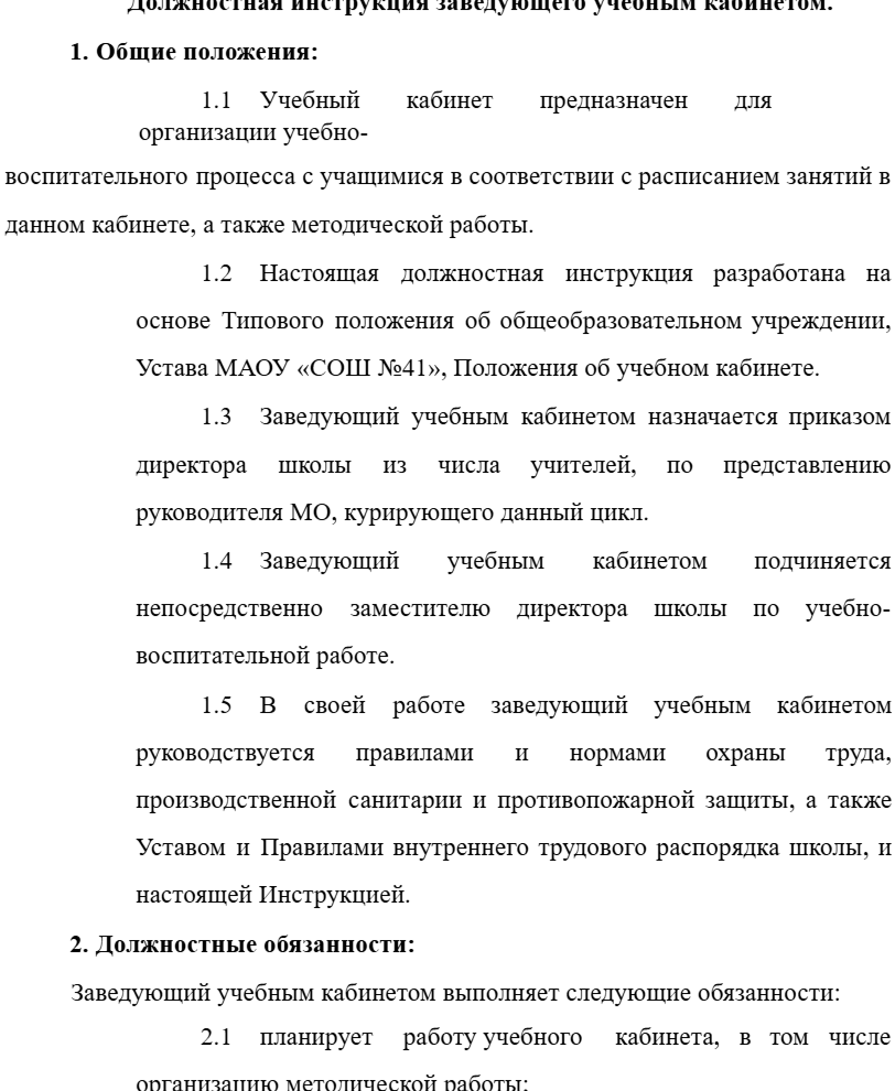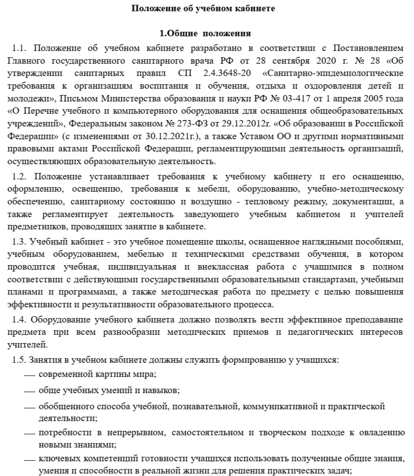 к работе/организации учебного кабинета